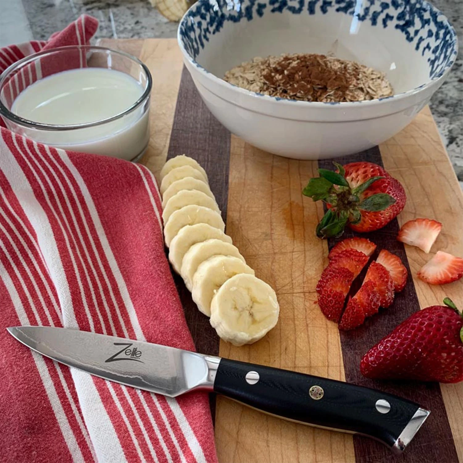 Schälen, Entkernen, Tranchieren oder Putzen von Obst und Gemüse: Diese Aufgaben der Kulinarik sind raffiniert, erfordern Geschick und unbedingt das richtige Instrument. Mit dem 4″ Schälmesser der Alpha-Royal Japanese Serie von Zelite Infinity by Klarstein gehen dir diese und andere Schneidearbeiten reibungslos von der Hand. In deiner Küche wird das kompakte Abziehmesser mit gebogenem Bauch, der besonders feinen Spitze und der geraden Klinge zum Star, selbst beim Formen von ausgefallener Garnitur und bei filigranen Präzisionsarbeiten.