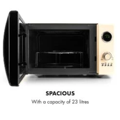 Der Fine Dinesty von Klarstein erfreut aber nicht nur den Gaumen, sondern auch das designverwöhnte Auge des leidenschaftlichen Mikrowellen-Fans. Glänzende Chrom-Details schmücken das geschmackvoll eingefärbte Gehäuse und leiten den Blick auf alle wichtigen Bedienelemente. Ein absolutes Highlight ist das beleuchtete LCD-Display in kreisrundem Retro-Design, welches im Dialog mit dem Dreh-/Druckknopf im Handumdrehen Zugriff auf die wichtigsten Funktionen bereit hält.