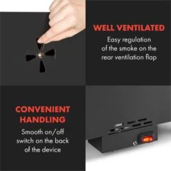 Entdecken Sie die traditionelle Kunst des Räucherns. Mit dem Klarstein Flintstone Steel Räucherofen verleihen Sie verschiedensten Speisen ganz nach eigenen Wünschen den richtigen Geschmack. Und nebenbei erhalten Fleisch, Fisch oder Wurstwaren eine deutlich längere Haltbarkeit! Mit einem 1600 Watt starken, elektrischen Heizelement sowie einem regelbaren Thermostat an der Oberseite des Gerätes bringt der Ofen die Aromaholzschnitzel ordentlich zum Rauchen und gart gleichzeitig die Räucherware ganz langsam zur Perfektion. Drei verchromte Räucherroste mit jeweils 40 x 25 cm Fläche bieten reichlich Platz für Speckseiten, Tofublöcke oder eigene Wurstkreationen, während drei Haken zusätzlichen Platz zum Aufhängen von Würsten oder Schinken bieten. Eine herausnehmbare Tropfschale fängt Kondenswasser und abtropfendes Fett und erleichtert die anschließende Reinigung. Die Dichte des Rauchs wird beim Klarstein Flintstone Steel Räucherofen ganz bequem über eine rückseitige Lüftungsklappe reguliert. Ein in die Tür integriertes Thermometer bis 300 °C macht die Überwachung der Räuchertemperatur ganz einfach. Räucherschnitzel und -aromen werden in der herausnehmbaren Edelstahlschüssel direkt über dem elektrischen Heizelement in leckeren Rauch verwandelt. Dank der Leichtbauweise und einem topseitigen Tragegriff lässt sich der Räucherofen mit wenig Aufwand versetzen.