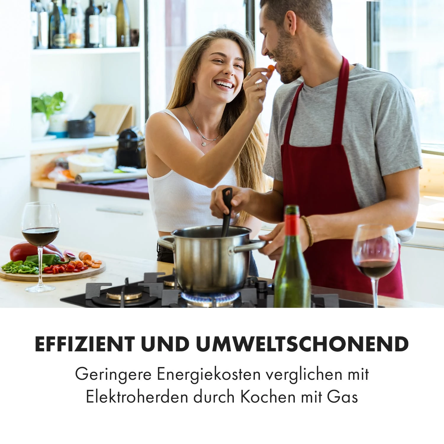 Goldflame 5 Gaskochfeld 5-flammig Messing-Brenner Glaskeramik Schwarz