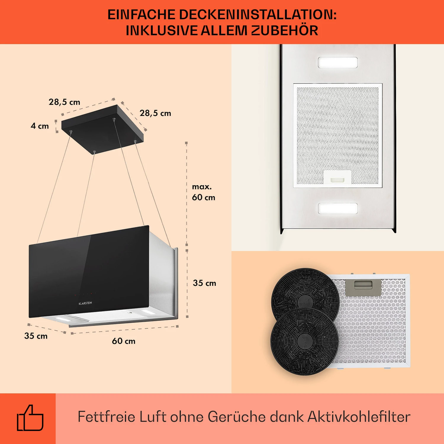 Kronleuchter L Inselabzugshaube 60cm Abluft: 590m³/h LED Touch Glas