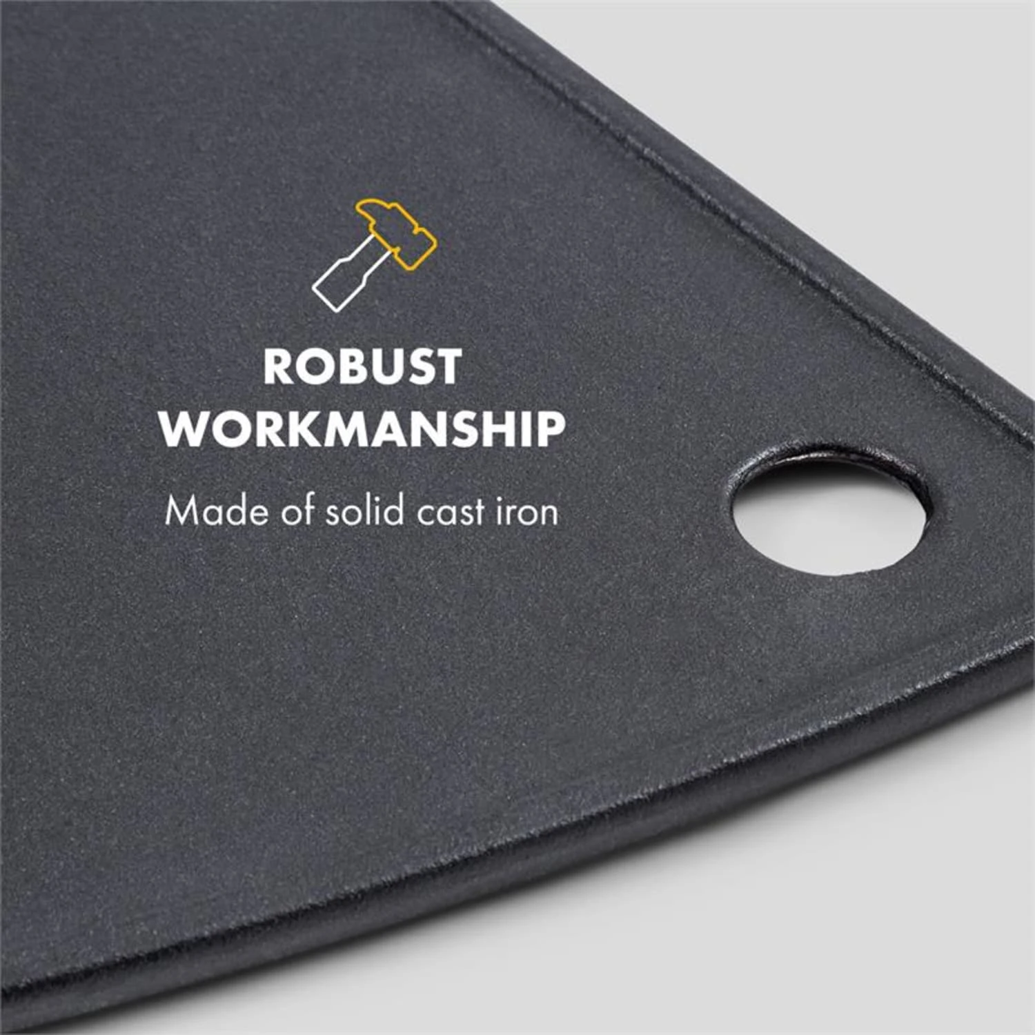 Die robuste Verarbeitung aus massivem Gusseisen sorgt dafür, dass die Grillplatte dank ihres hohen Gewichts sicher auf dem Gasgrill liegt. Die Hitze verteilt sich gleichmäßig, überschüssiges Fett kann über den integrierten Fettablauf einfach ablaufen. Mit ihrer glatten Oberfläche ist sie besonders für empfindliche Lebensmittel wie Eier oder Fisch geeignet.