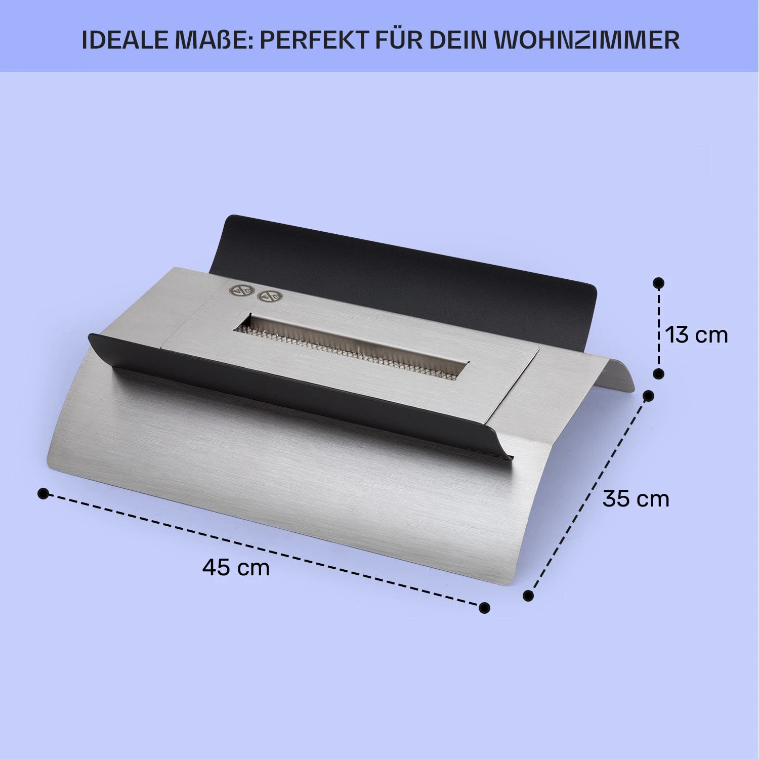 Lass dich von einem romantischen Feuer verzaubern und genieße eine warme Atmosphäre mit der Klarstein Phantasma Graca Ethanol-Feuerstelle. Dank dem modernen Tischkamin kannst du am offenen Feuer entspannen – sauber, sicher und unkompliziert. Der Bio-Ethanol-Brenner ermöglicht dir ein warmes Flammenspiel ganz ohne Geruch und Rückstände. Dabei ist das Gehäuse aus robustem Edelstahl gefertigt und in modernen Formen gestaltet. Anstelle von Holz oder Kohle brennt hier Bio-Ethanol, sodass kein Rauchabzug benötigt wird und das Feuer sauber und völlig rückstandslos flackern kann. Die integrierte Löschhilfe macht es dir einfach, das Flammenspektakel mit einer maximalen Brenndauer von 4,5 Stunden jederzeit zu beenden. Das stilvolle Design untermalt die Schönheit heller Flammen und sorgt für eine besondere Atmosphäre in jedem Raum.