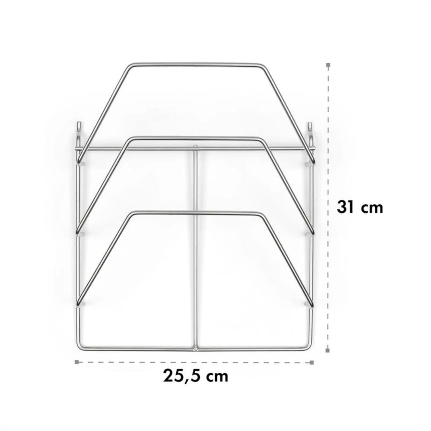 Das Hängeregal ist hervorragend verarbeitet und aus verchromtem Stahl gefertigt. Innerhalb von Sekunden lässt es sich an der Seite des Gasgrills anbringen und bietet Platz für die drei Grillplatten des Grillrosts 10033617. Die Grillplatten sind nun permanent griffbereit und platzsparend angebracht, um mit nur einem Handgriff Fleisch, Gemüse, Fisch, Eierspeisen oder auch Pizza auf ihnen zuzubereiten.