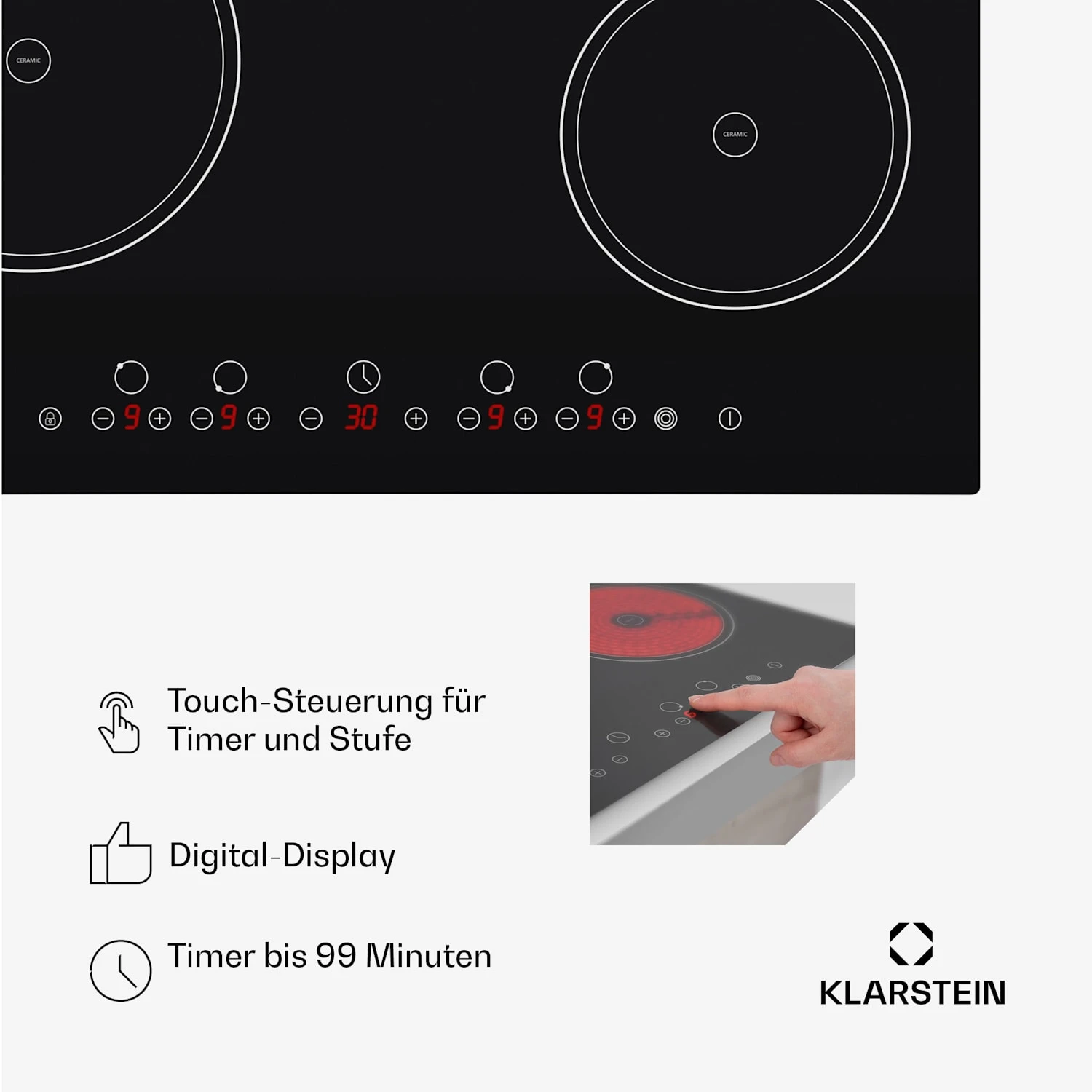 Virtuosa Keramikkochfeld Einbauherd 6500W 59x52cm 4 Zonen Glaskeramik